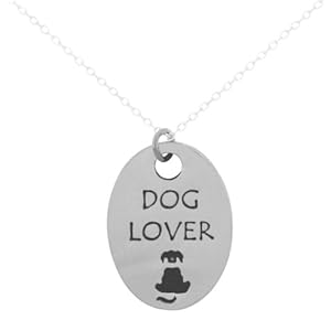 Amazon has this Pewter "Dog Lover" Oval Pendant Necklace, 16+2" Extender